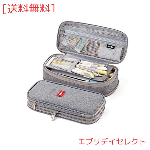 【マチ付くなデザイン】身中のファスナーを開ければ、マチ付きデザインになり、展開で広がる拡張式。見開き式になるので、中身が見やすく、消しゴムや修正テープなど、小さいものも取り出しやすく便利です。ふせんや定規などを分けて収納できるポケットがついています。 筆記具などと分けて収容できるので、小物が探しやすく汚れにくいので安心です。