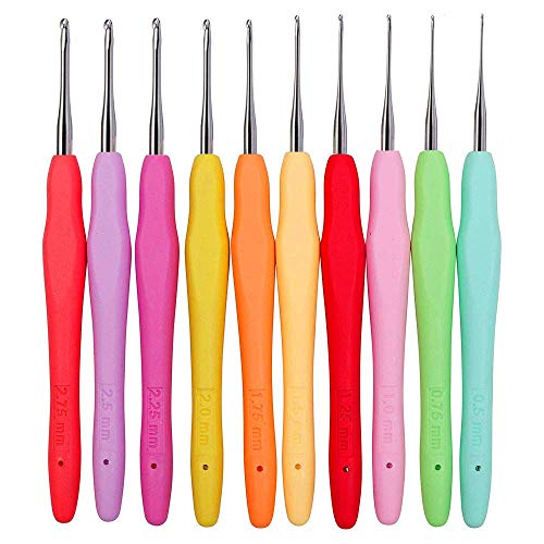 ・10本カギ針0.5mm 0.75mm 1.0mm 1.25mm 1.5mm 1.75mm 2.0mm 2.25mm 2.5mm 2.75mm