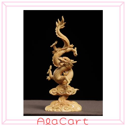 龍 置物 木彫り 辰年 置物 龍神様 グッズ 金運上がる置物 (高さ20cm×巾8.5cm)