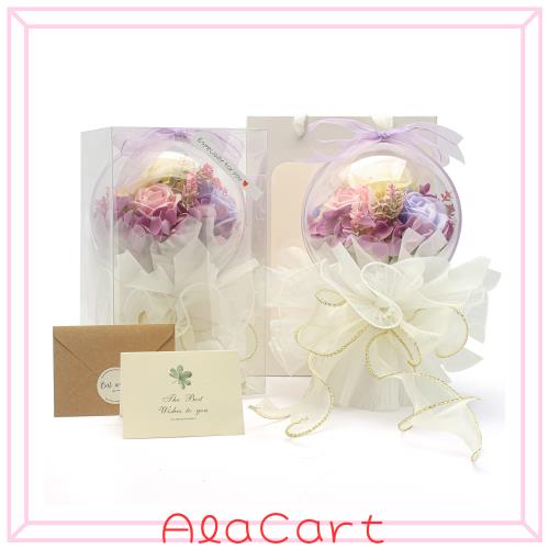 ◆商品名:LOZIZI バルーンフラワー ボボボールブーケ ソープフラワー花束 造花 枯れない花 人気 石鹸花 アクリルボール、クリアボックス、メッセー