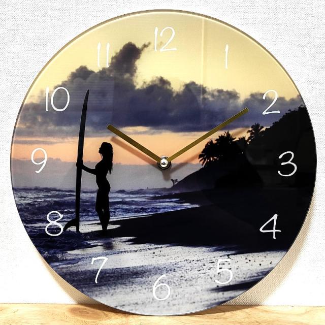 ガラスクロックに爽やかなビーチシーンをデザインしたお洒落な掛け時計です。