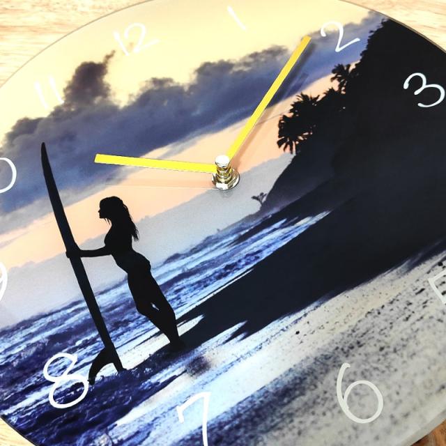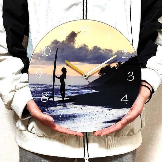 掛時計 ウォールクロック ガラス ビーチ 海 リゾート 壁掛け インテリア 南国 サンセット おしゃれ ディスプレイ 可愛い カフェ バー 店舗