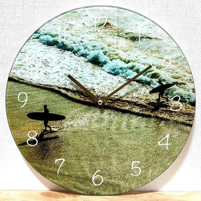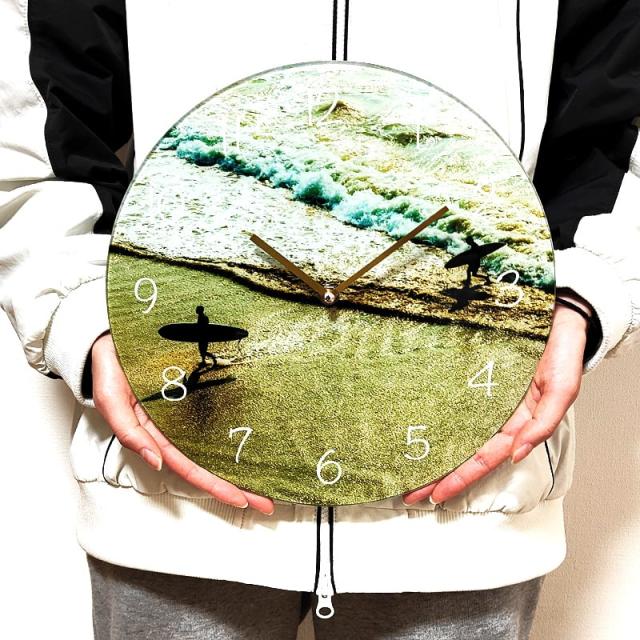 掛時計 ビーチ ガラス ウォールクロック 海 南国 リゾート 壁掛け インテリア サーフィン サーファー ディスプレイ 可愛い おしゃれ カフェ バー