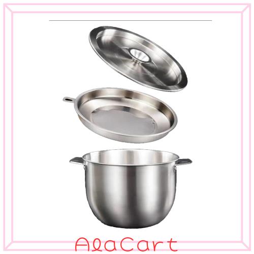 ???【仕様】サイズ:約直径23.6?×高い15? 【重量】:約800g 【容量】:約5.2L 【材質】 : 18-8ステンレス鋼 【パッケージ】:蓋×1、網皿×1、本体×1