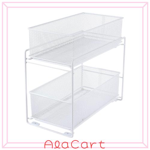 Bremoon シンク下スライドラック 2段 メッシュメタル キッチン収納ラック 調味料収納棚 (ホワイト)