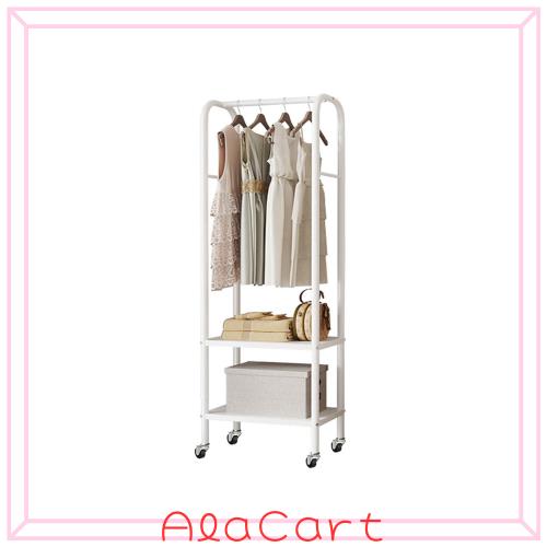 Huaniun ハンガーラック スリム 頑丈 キャスター付き2段棚板付き 洋服ラック 見せる収納 コート掛け 洋服掛け 省スペース 幅49×奥行33×