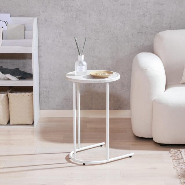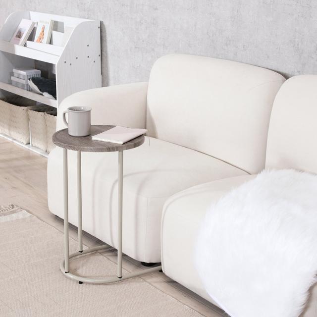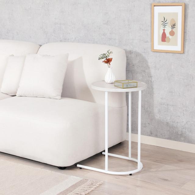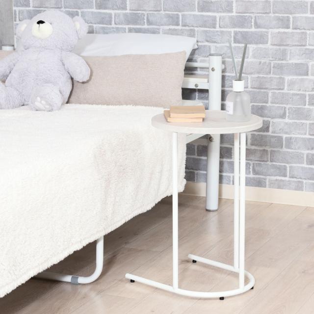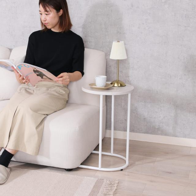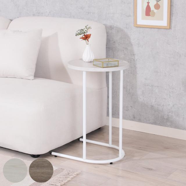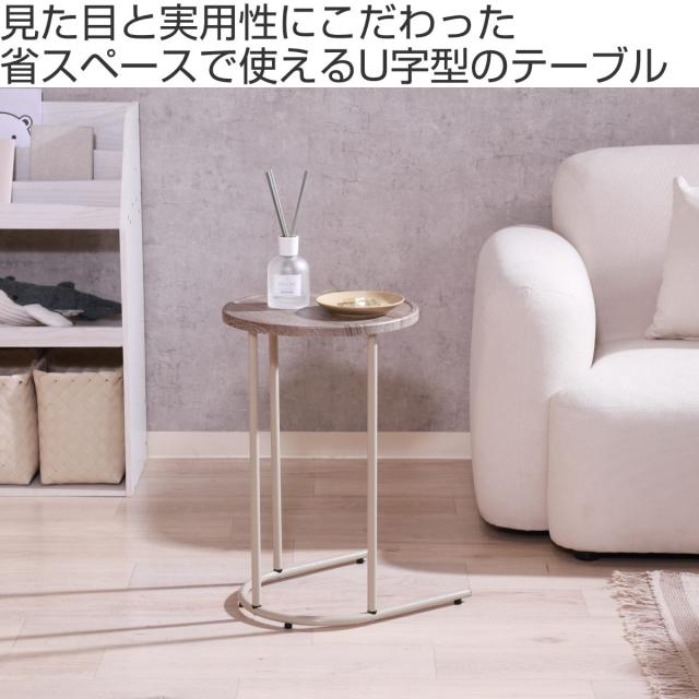 サイドテーブル 天板円型 高さ53.5cm Chamill ( 丸 円形 木目調 ナイトテーブル ミニテーブル ソファ ベッド 横 差し込み U字型 おしゃれ シンプル 韓国風 北欧風 インテリア )