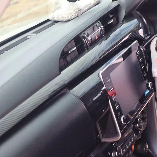 適用: トヨタ ハイラックス ハイラックス レボ 2024 2025 ABS カーボンファイバー フロント ダッシュボード パネル ストリップ カバー センター コントロール パネル カバー トリム スタイリング
