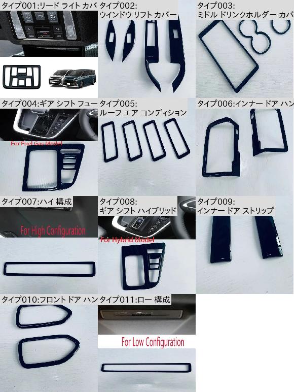 ・タイプ001:リード ライト カバー・タイプ005:ルーフ エア コンディション