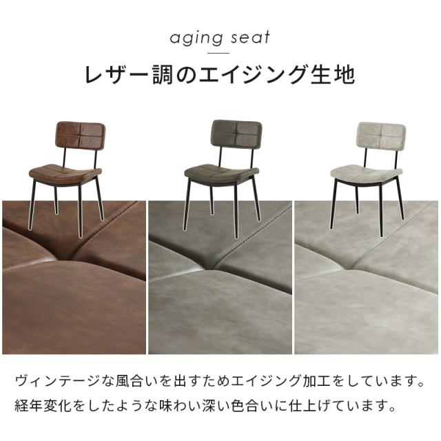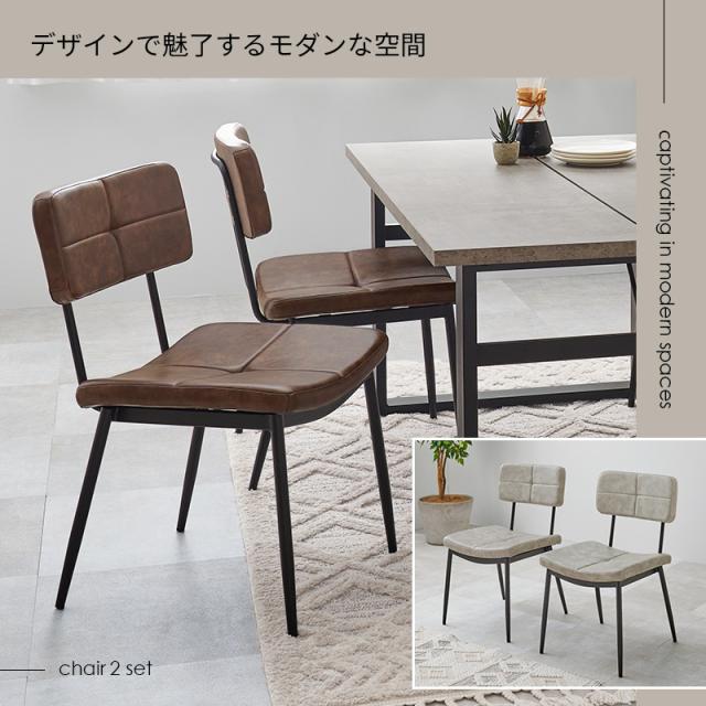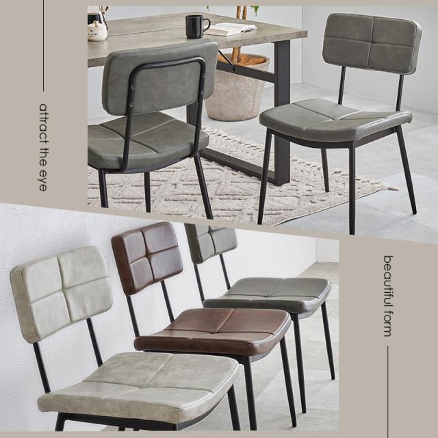 2脚セット アイアン×レザー調 ダイニングチェア 【送料無料】 おしゃれ モダン クッション付き 椅子 レザー調 アイアン脚 スリム リビングチェア ヴィンテージ