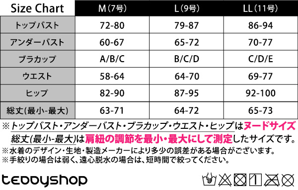 ※トップバスト・アンダーバスト・ブラカップ・ウエスト・ヒップはヌードサイズ、