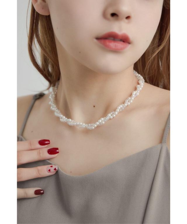 ツイストパールビーズネックレス