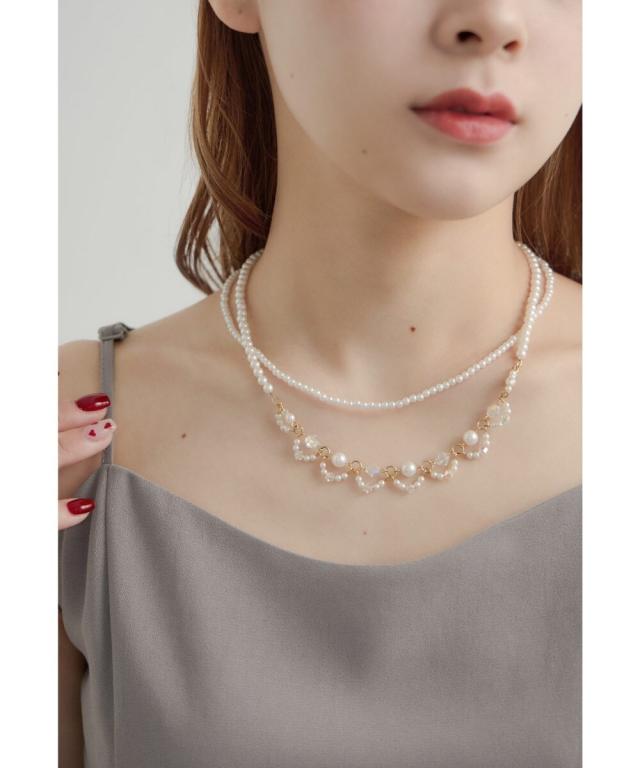 niana ニアナ 大きさの異なるパールと煌めくオーロラビーズでスカラップ風に見立てた2連ネックレス。