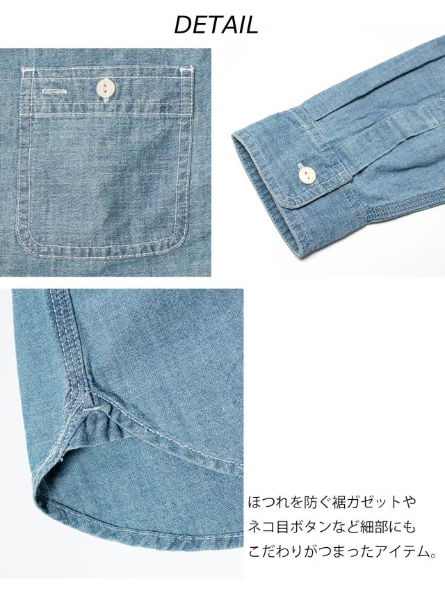 | 霜降り調の表情でヴィンテージ感に拘った一着。三本針仕様で脇にはマチがあり、更にネコ目ボタンとこれでもかと当時のディティールを忠実に再現。着る人を選ばないレギュラーシルエット+シャンブレーシャツ特有の着丈の長さでタックインなど様々なスタイルに取り入れやすいく、重宝するアイテムになっております。 シーズンレスに着用いただく為にコットン100%の素材は吸水・保湿性、通気性にも優れ、洗いざらしが良い雰囲気を演出。水にも強いため洗濯も簡単で風合いの変化を楽しめるのも魅力の一つ。デニムシャツとは一味違うシャンブレーにはカジュアル感がありつつ、どこか上品に見える品の良さからセミフォーマルやビジネスカジュアルでも着用いただけます。 |