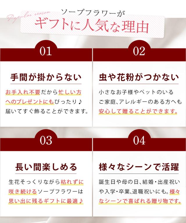 ※ソープフラワーは観賞用です。石鹸としては使用できません。