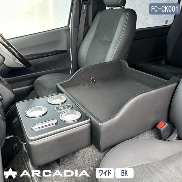マルチユースコンソール ハイエース ワイド用 USB Qi アームレスト ペット お出かけ ドライブ ブラック ARCADIA 200系 抗菌処理 FC-CK001