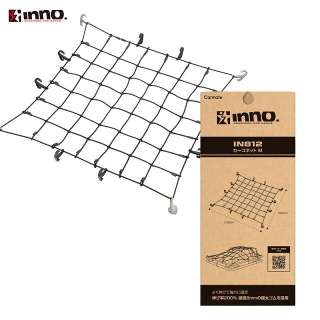 カーゴネットM 100×100cm ブラック 荷物固定 ネット ラック上の荷物 線径8mm極太ゴム INNO IN812