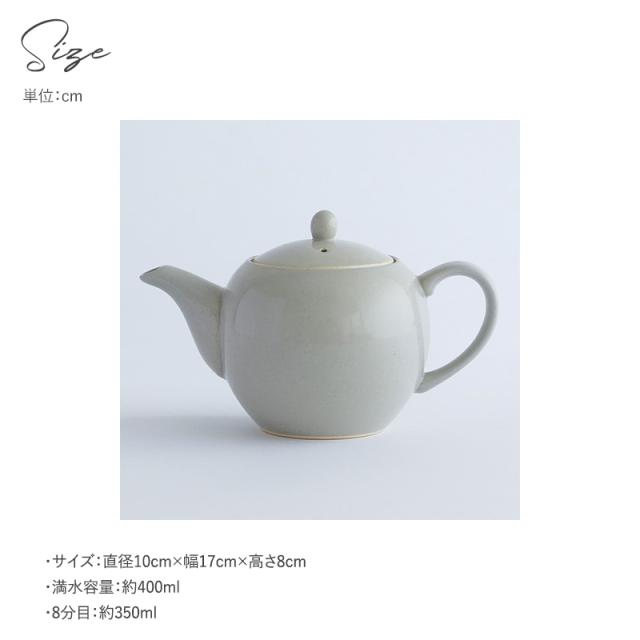 ぽってりとした形に親近感を覚えるポット。小ぶりなサイズで一人分や、ちょっとしたお茶の時間に最適です。やさしい丸みのある注ぎ口に、グレーがかったベージュのニュアンスカラーがなんとも愛着のわくアイテムです。