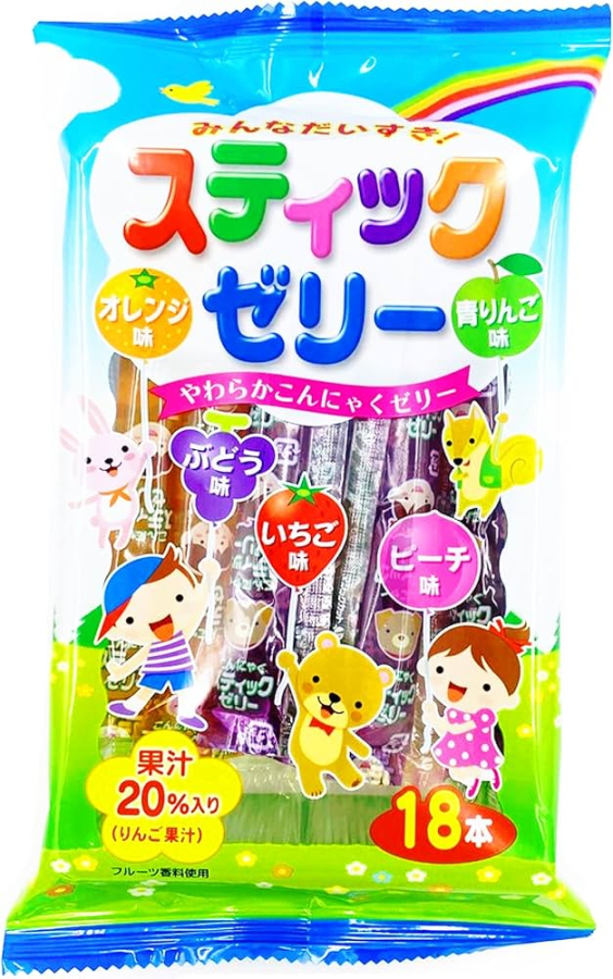 原材料 異性化液糖(国内製造)、砂糖、濃縮リンゴ果汁、こんにゃく粉/ゲル化剤(増粘多糖類)、ソルビトール、酸味料、香料、着色料(アントシアニン、クチナシ、フラボノイド、カロチノイド)