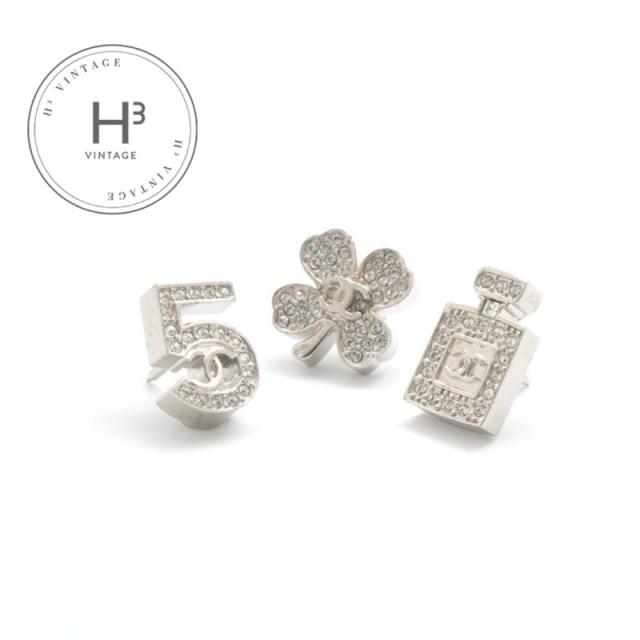 シャネル CHANEL ブローチ コサージュ シルバー 3点セット クローバー ボトル No.5 ココマーク ピンブローチ プッシュピン 送料無料