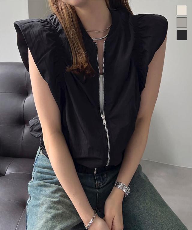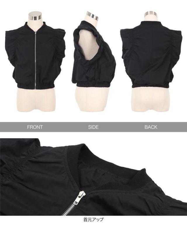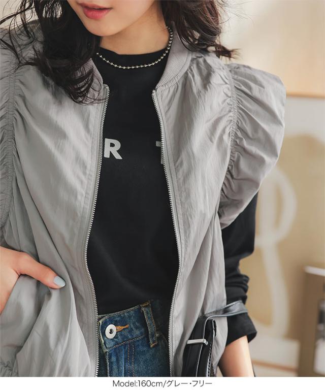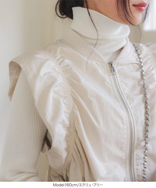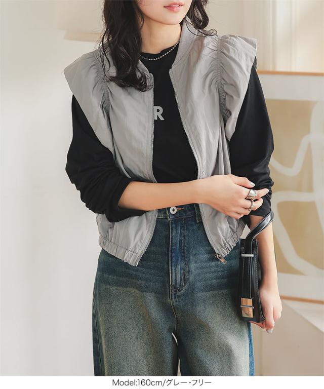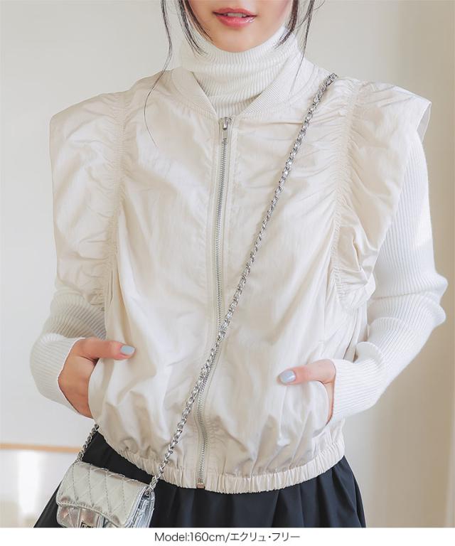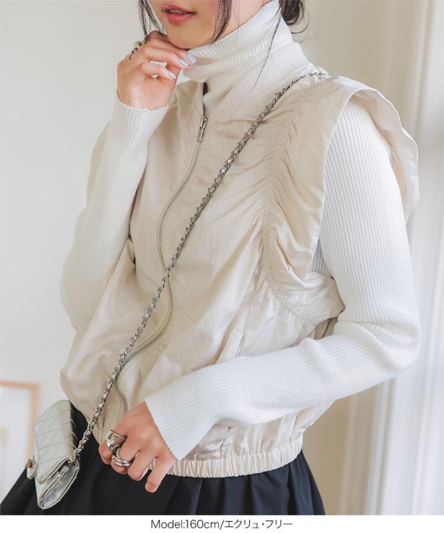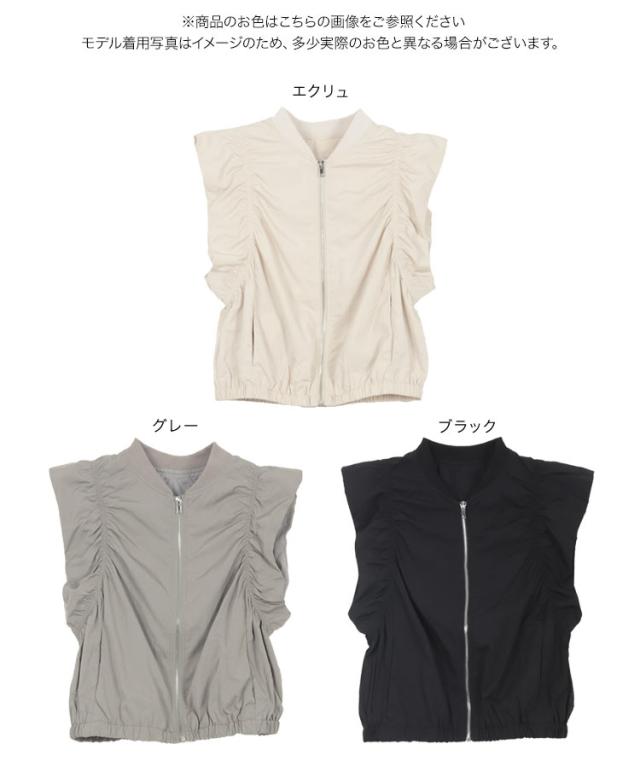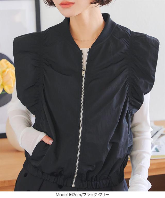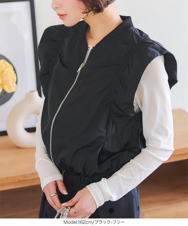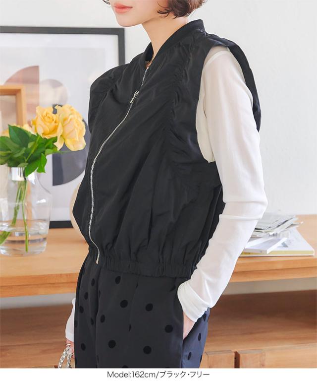 春新作 シャーリングベスト K1363 入荷済 レディース 20代 30代 40代 ベスト ジレ ジャケット ブルゾン アウター ジレベスト ノースリーブ ノースリーブブルゾン リブ シャーリング フレンチスリーブ