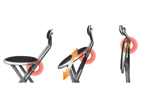 座部後端にあるリングが背もたれパイプをスライドすることで、ワンタッチで安定した開閉操作が可能です。 |