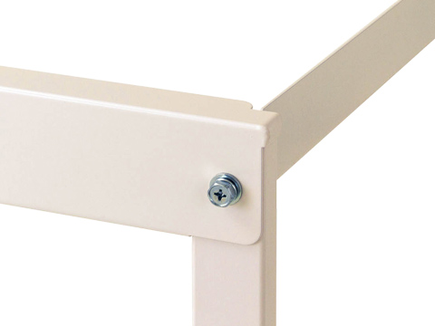 天板と脚の接合部分は、メーカーオリジナルパーツを使用した天枠突き当て方式となっており、少ないボルトで横揺れを防止してくれます。 |