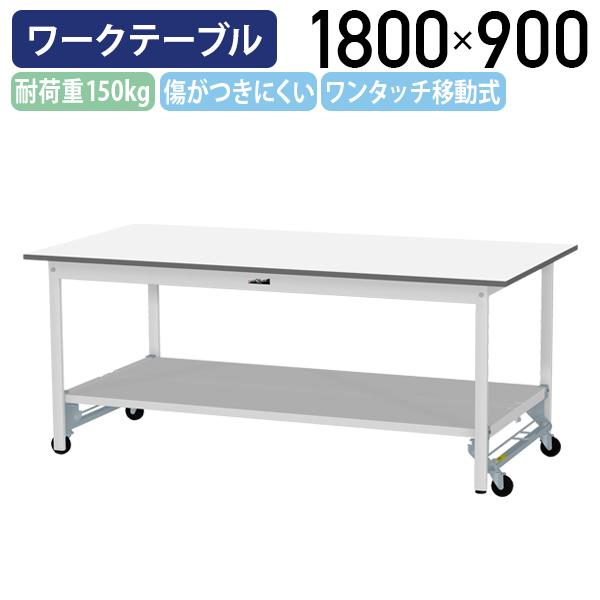 国内メーカー品 ワンタッチ移動式ワークテーブル W1800 D900 H740 全面棚板付き 作業デスク 座り作業 キャスター付き 代引不可 法人宛限定 YI-SUPU1890-TT
