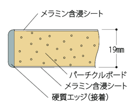 天板に使用されている低圧メラミンは、7Hと表面硬度が高く、引っかきなどで傷が付きにくくなっています。 |