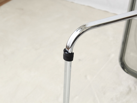 床に接地するフレーム部分には、スチール本体を傷から守る保護パーツが付いており、スチール部と床がぶつかる際の音も軽減させる効果があります。 |