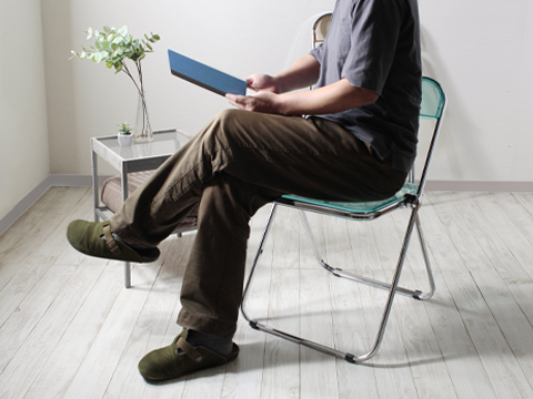 折り畳むと約50mmのフラットな状態で収納が可能となり、場所を取らずに使用する時に取り出せる手軽さが折りたたみイスの最大のメリットです。 |