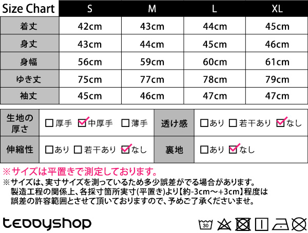 製造工程の関係上、各採寸箇所実寸(平置き)より【約-3cm〜+3cm】程度は