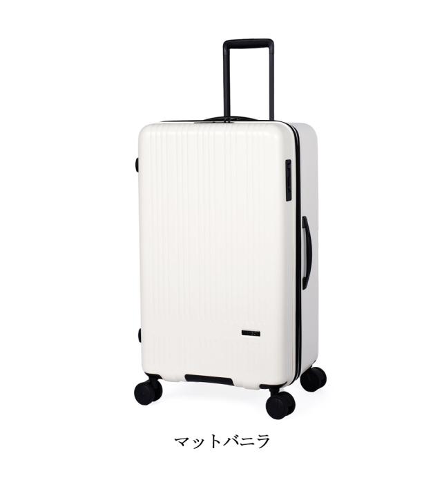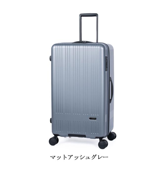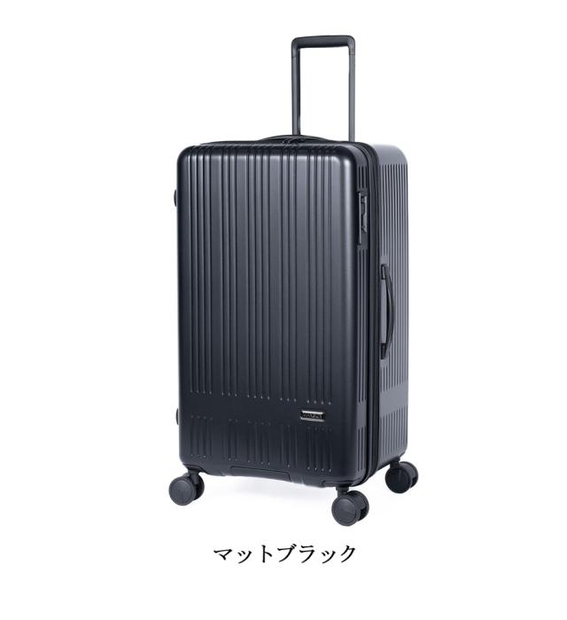 大きくても歪みにくい頑丈なボディ!スーツケースの型崩を防止する『ワイヤー』+『プレート』を装備した"変形防止補強"仕様です。使いやすさを追求し機能も充実!「拡張」「大径静音キャスター」「前輪ストッパー」「ボトムハンドル」「4桁ダイヤルTSロック」など、他にも細かなこだわりを装備しています。カラーはマット系4色展開。サイズバリエーションは、「手荷物預け無料最大サイズ」1サイズのご用意です。