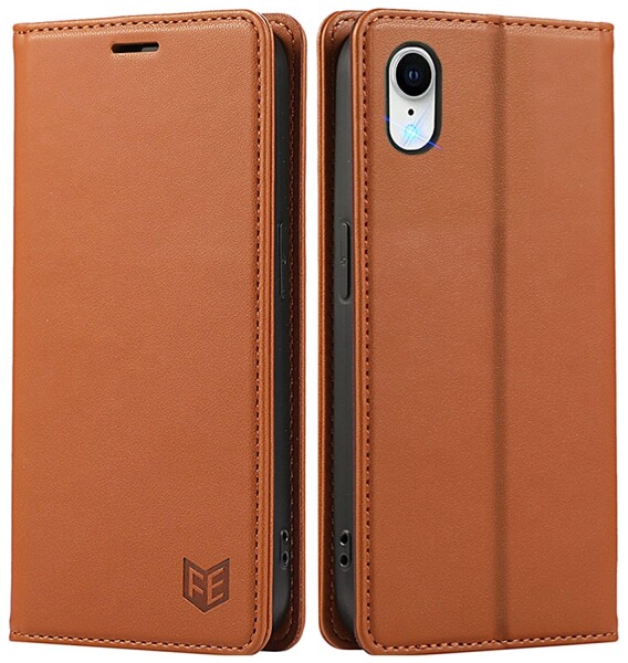 FeeY iphone xr ケース 手帳型 IphoneXR 手帳 ケース 耐衝撃 カード収納 マグネット式 スタンド機能付き アイフォン xr 携帯カバー 全面保護 スマホケース 6.1インチ対応 ブラウン