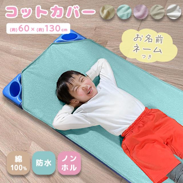 コットカバー 防水シーツ 60×130 保育園 入園準備 防水 ポリウレタンコーディング 綿100% パイル地 ノンホルムアルデヒド お名前ネーム付き 四隅ゴム 洗える お昼寝 おねしょ 寝汗 対策 ベビー オールシーズン ベージュ ブルー ラベンダー グレー ホワイト 無地 ネコポス便