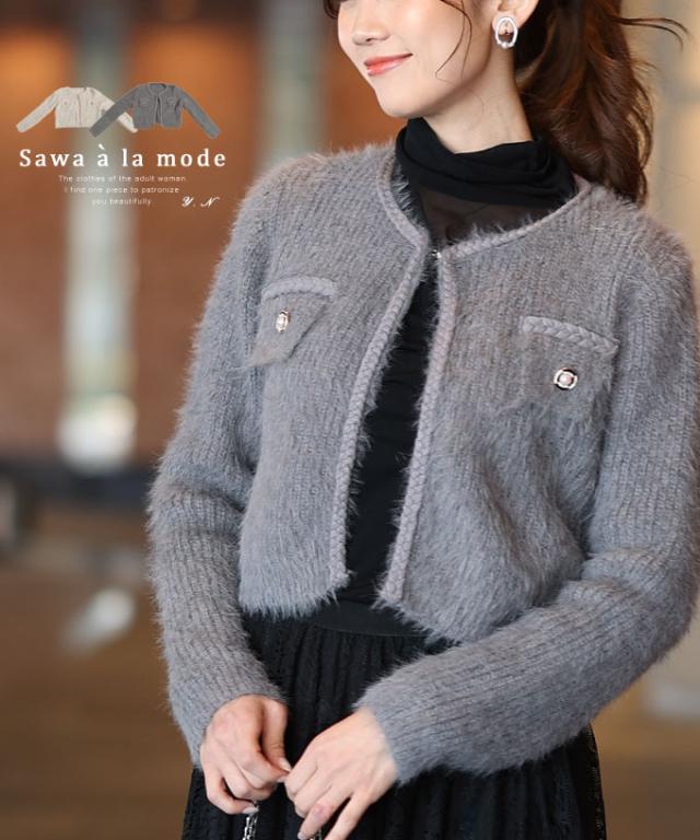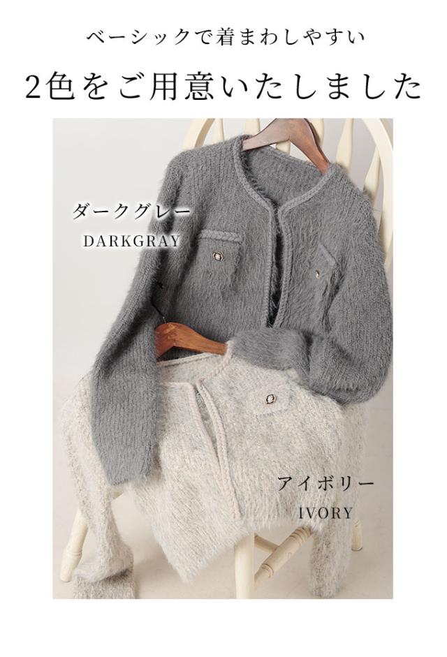 冬新作 ふわふわシャギーが心地よいニットジャケット レディース ファッション アウター ジャケット 羽織り ニット アイボリー 大人可愛い 40代 レディースファッション 50代女性 ファッション 60代 ミセスファッション サワアラモード sawaalamode otona mode-9839