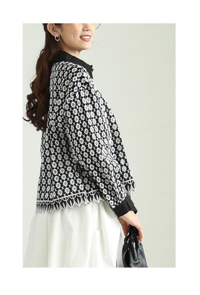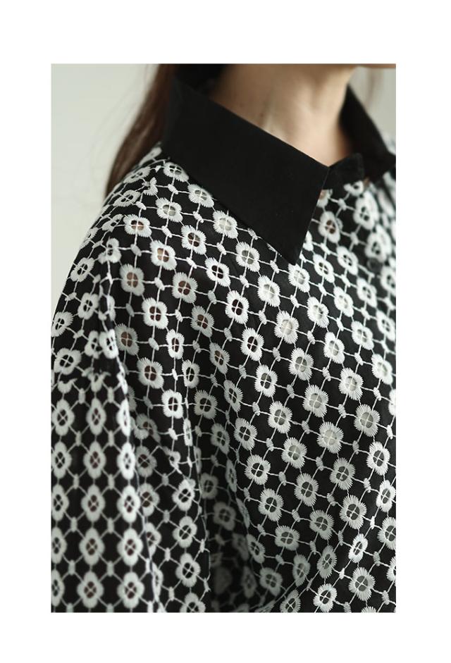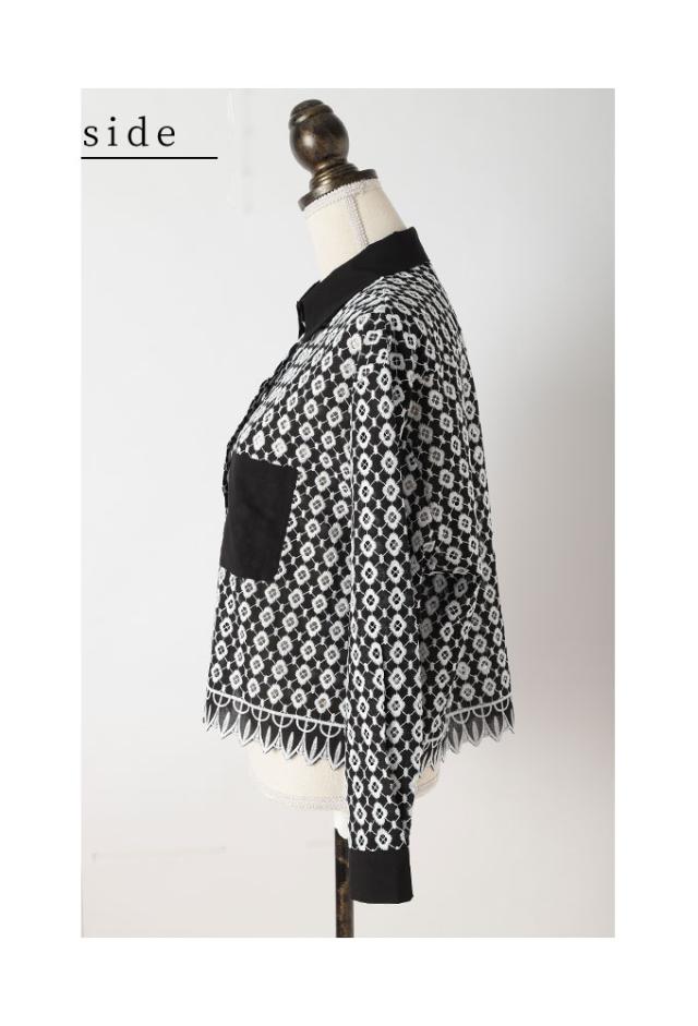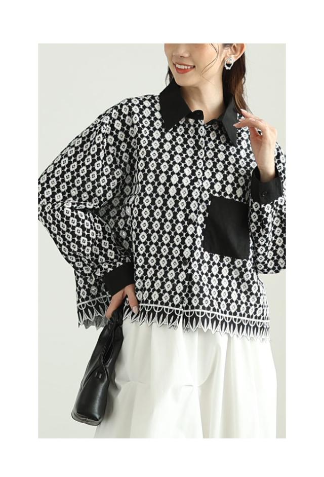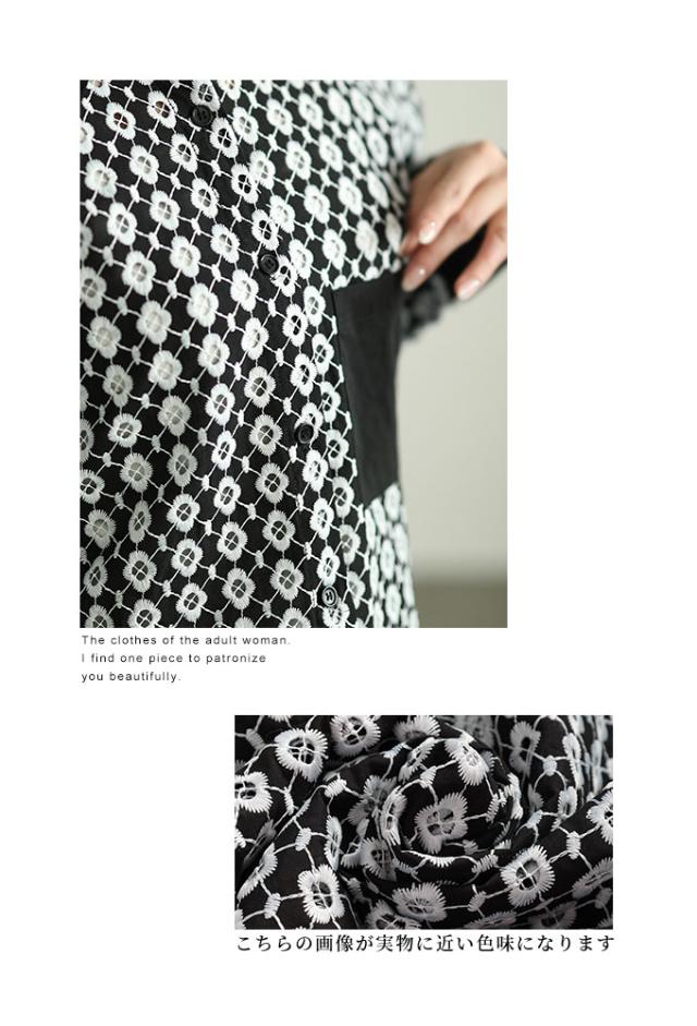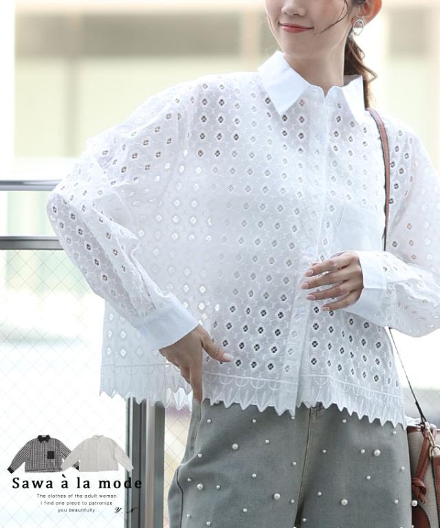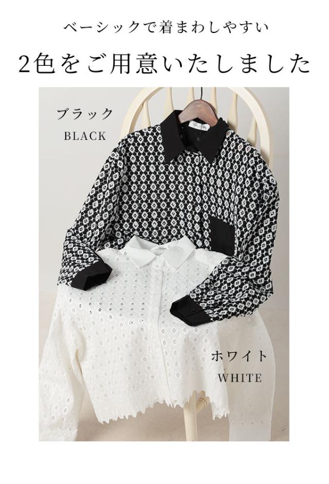春新作 お花が浮かび上がるパンチングレースのコットンシャツブラウス レディース ファッション トップス ブラウス シャツ 白 黒 大人可愛い 40代 レディースファッション 50代女性 ファッション 60代 ミセスファッション サワアラモード sawaalamode otona aljun-936s