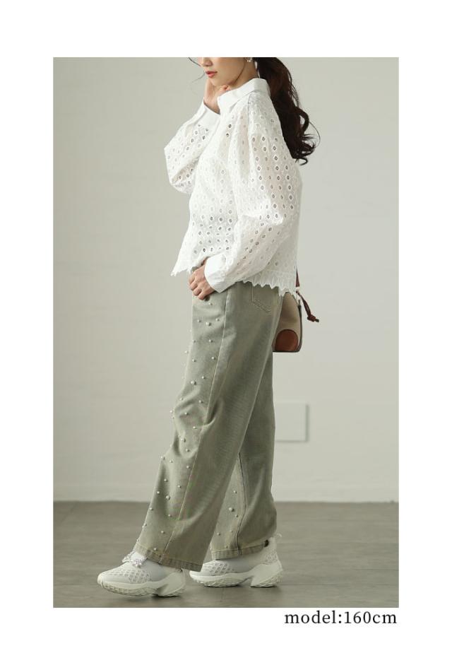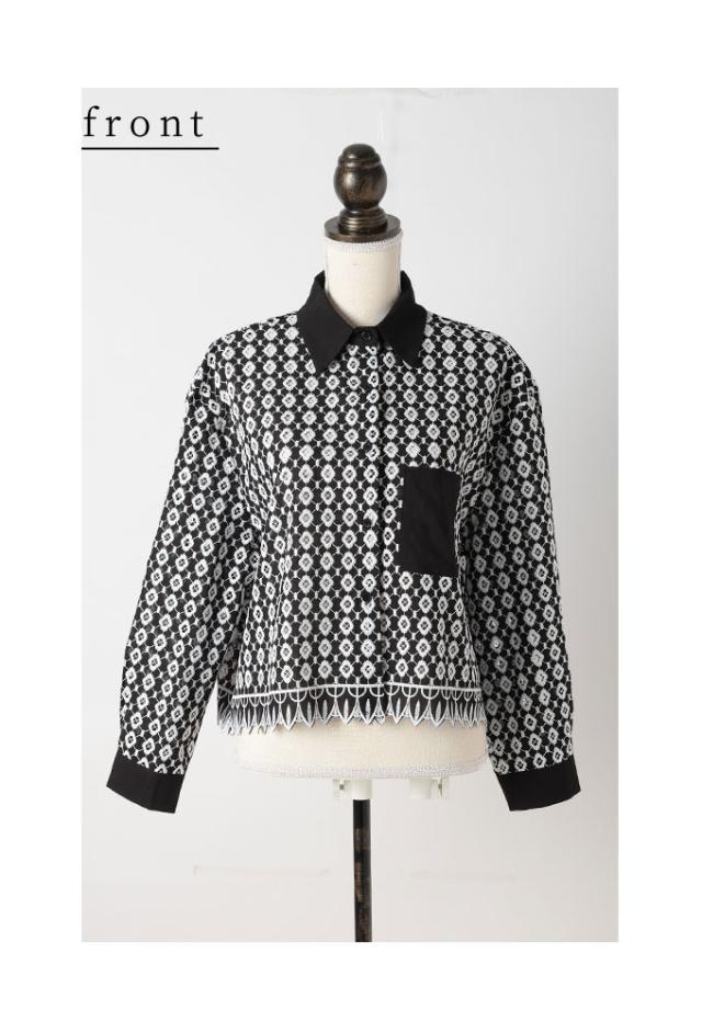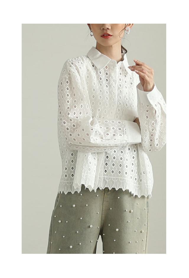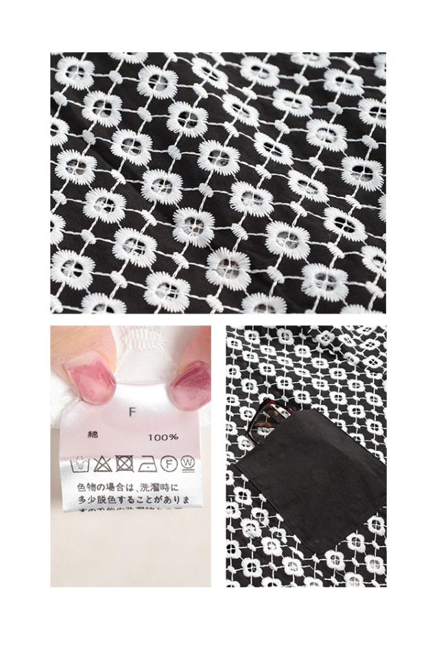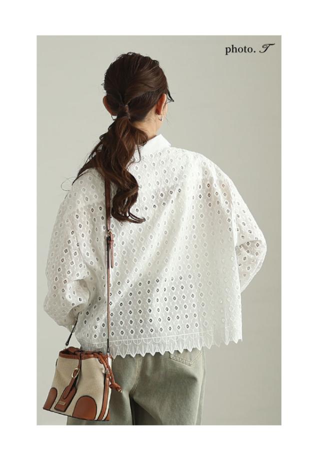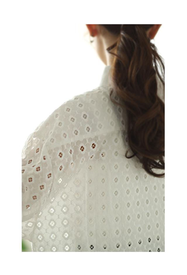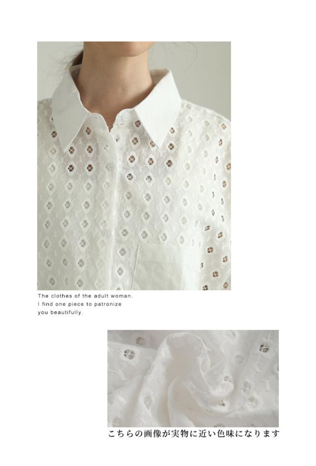 商品名: 花浮かぶパンチングレースのコットンシャツブラウス