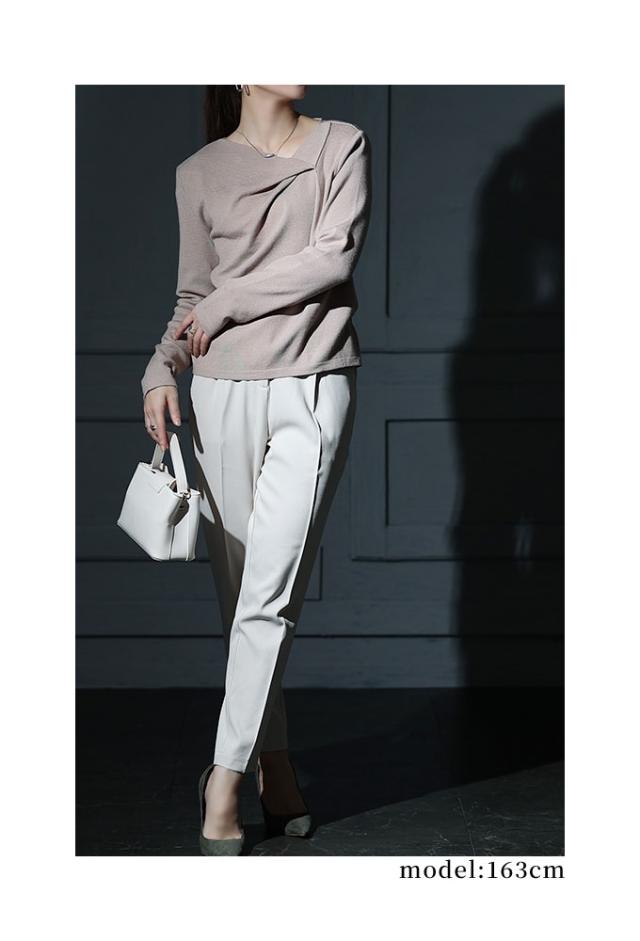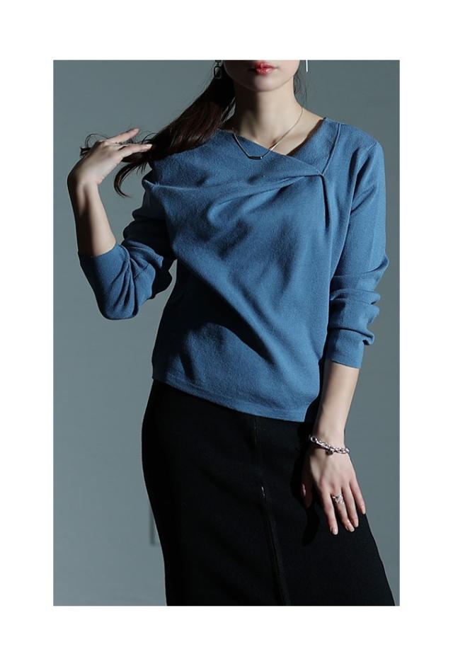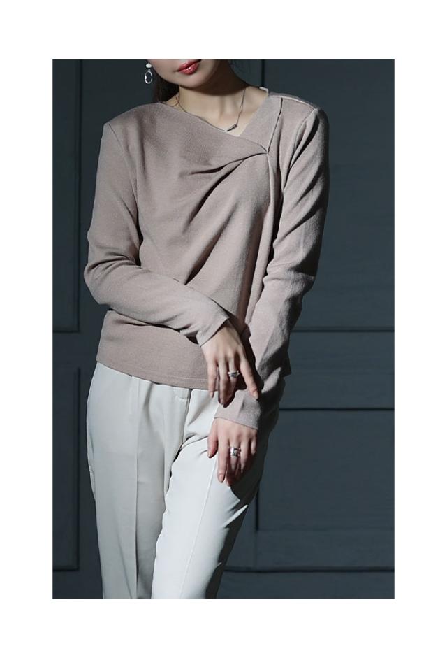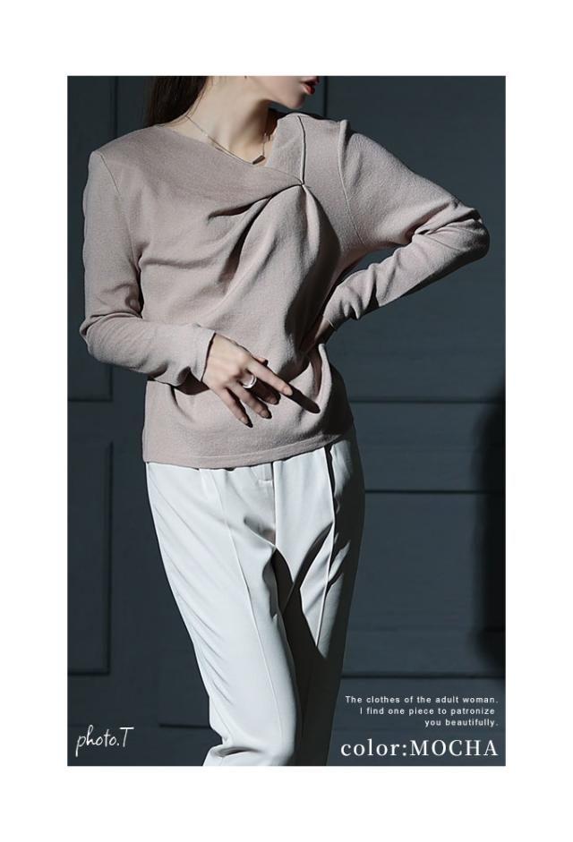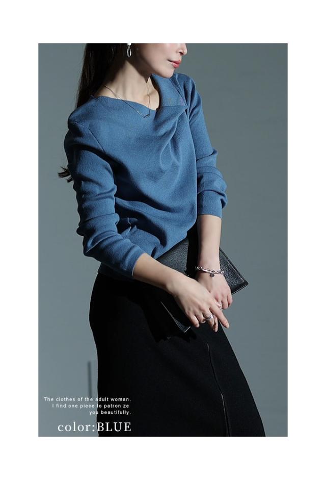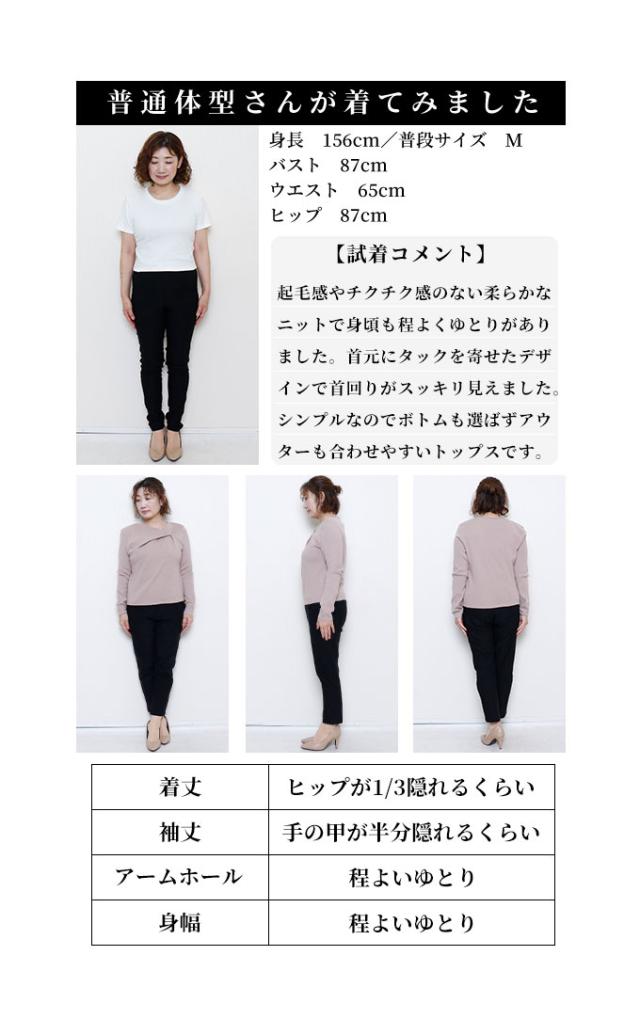 春新作 ヒトクセでこなれるタックネックライトニットソー レディース ファッション トップス ニット カットソー タック アシンメトリー 無地 長袖 春 秋 冬 30代 40代 50代 60代 サワアラモード sawaalamode otona 大人 cawaii 可愛い 洋服 かわいい服 sawa-9855