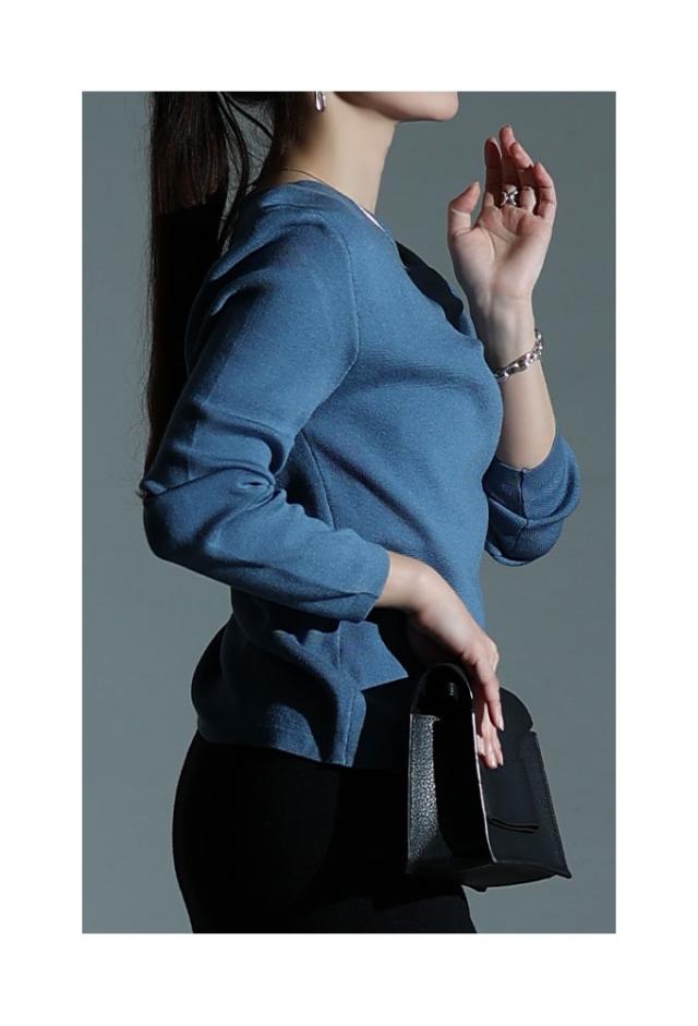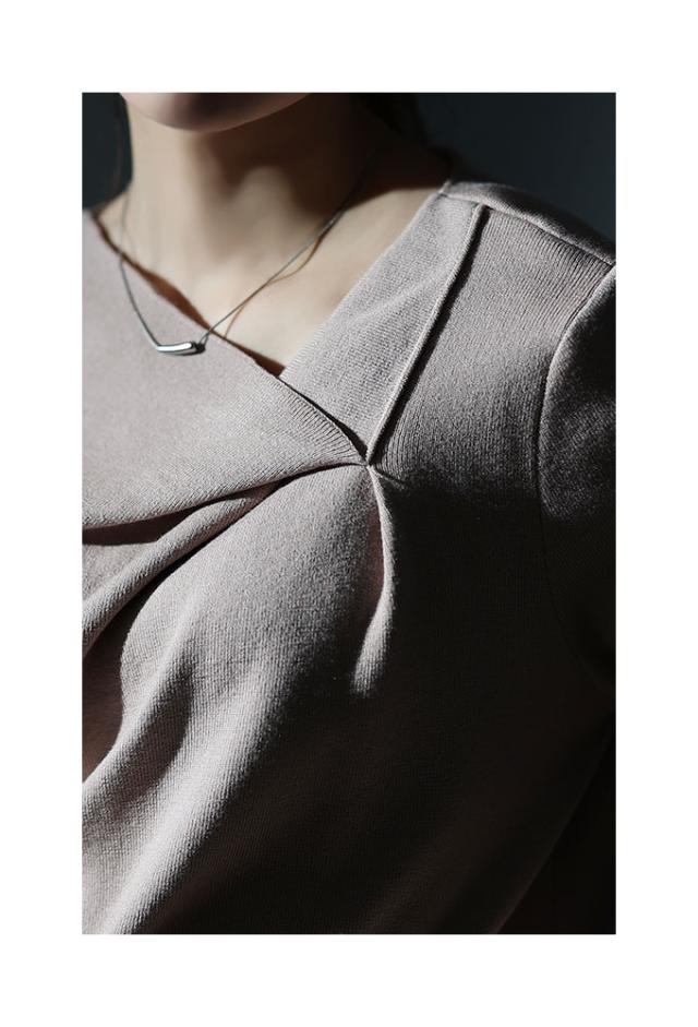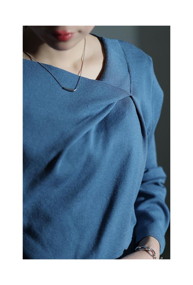 特徴: タック アシンメトリーネック ハイゲージ リブニット