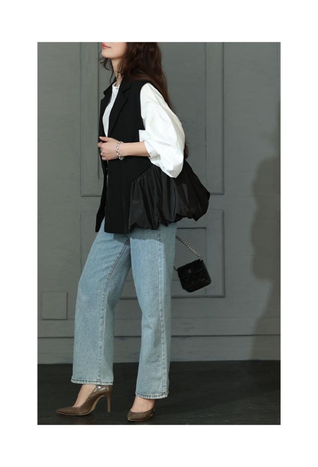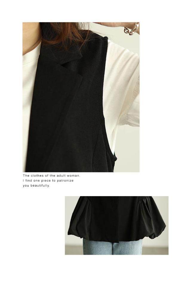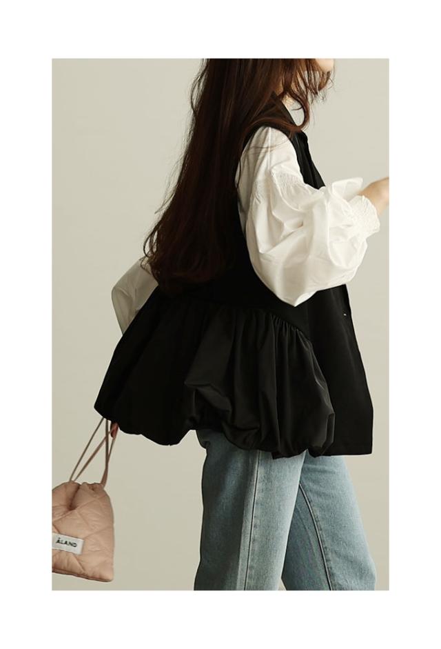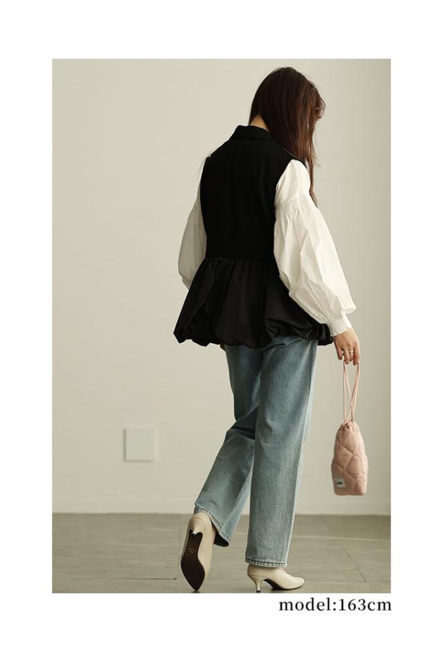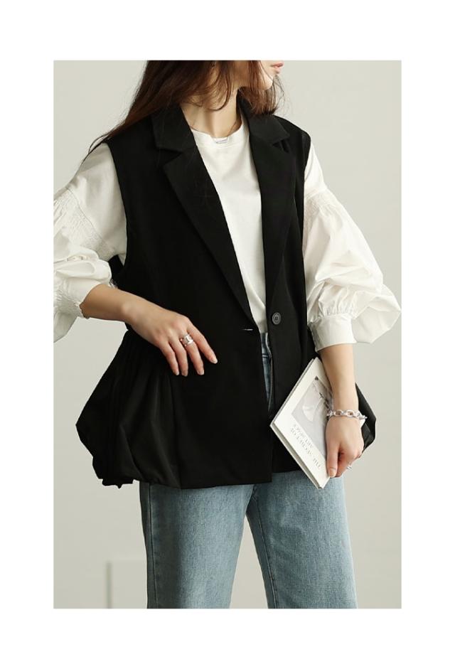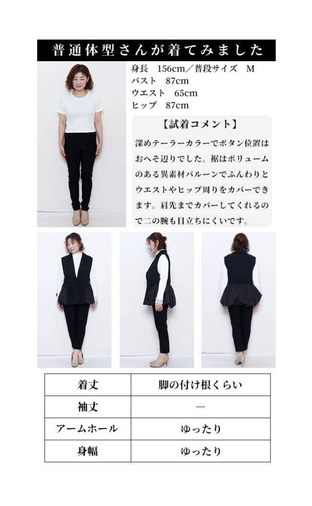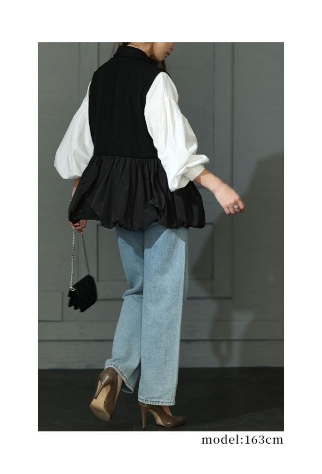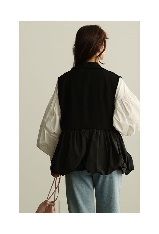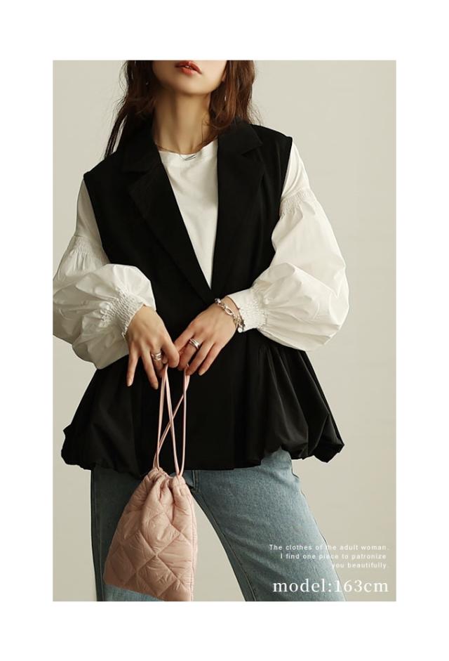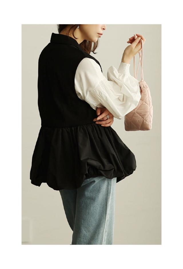 春新作 甘辛な大人スタイル異素材ジレジャケット レディース ファッション アウター ジャケット ベスト ジレ 異素材 バルーン 菱襟 ノースリーブ 無地 黒 30代 40代 50代 60代 サワアラモード sawaalamode otona 大人 cawaii 可愛い 洋服 かわいい服 swmam-190233