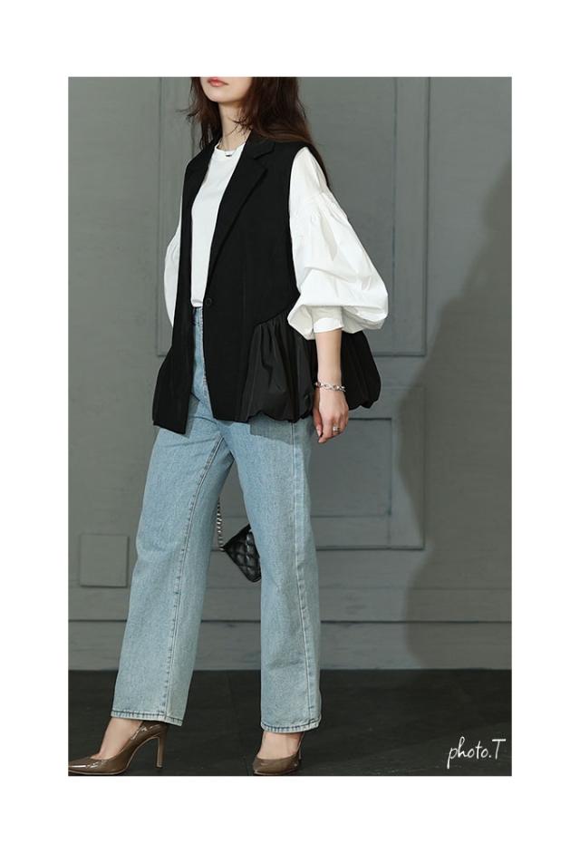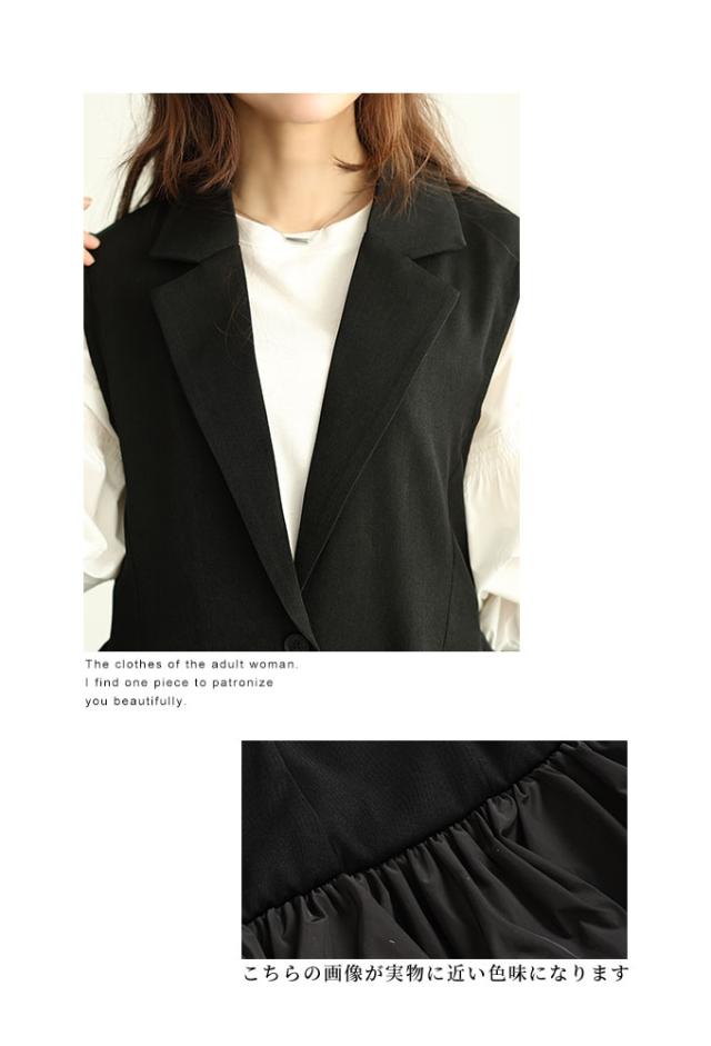 商品名: 甘辛な大人スタイル異素材ジレジャケット