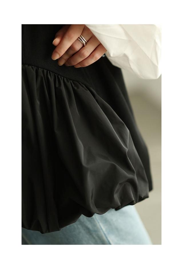 特徴: 異素材 バルーン 菱襟 ボタン