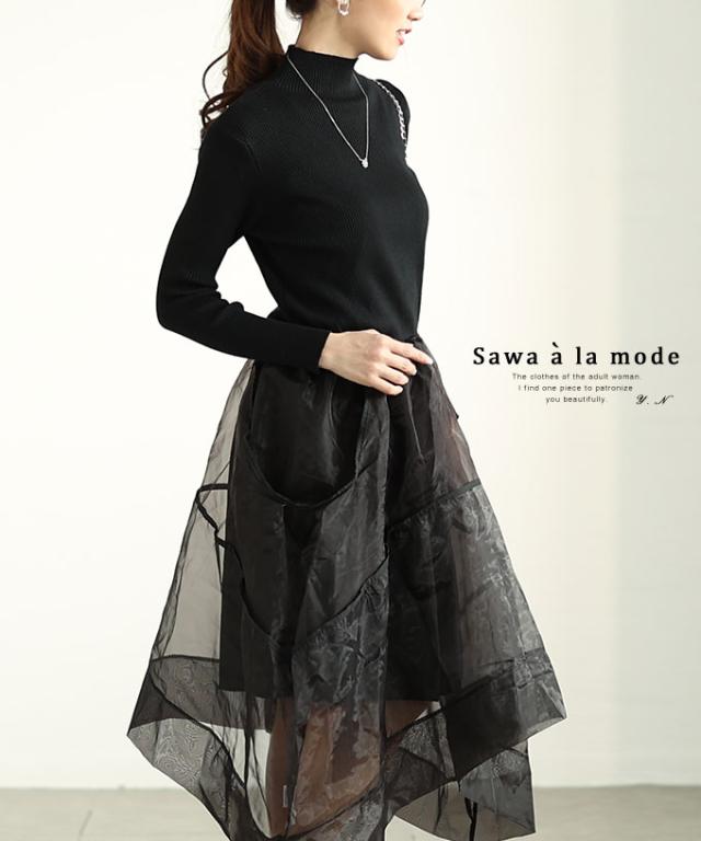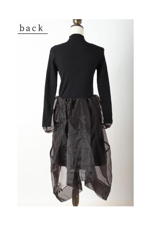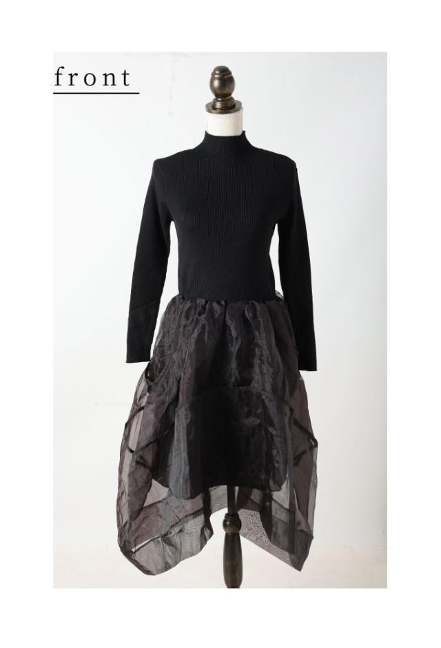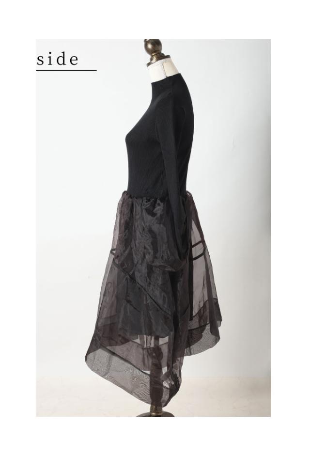 春新作 モードに華やぐニット切り替えアシンメトリーオーガンジーワンピース レディース ファッション ワンピース ドレス 黒 冬 大人可愛い 40代 レディースファッション 50代女性 ファッション 60代 ミセスファッション サワアラモード sawaalamode otona mode-9848