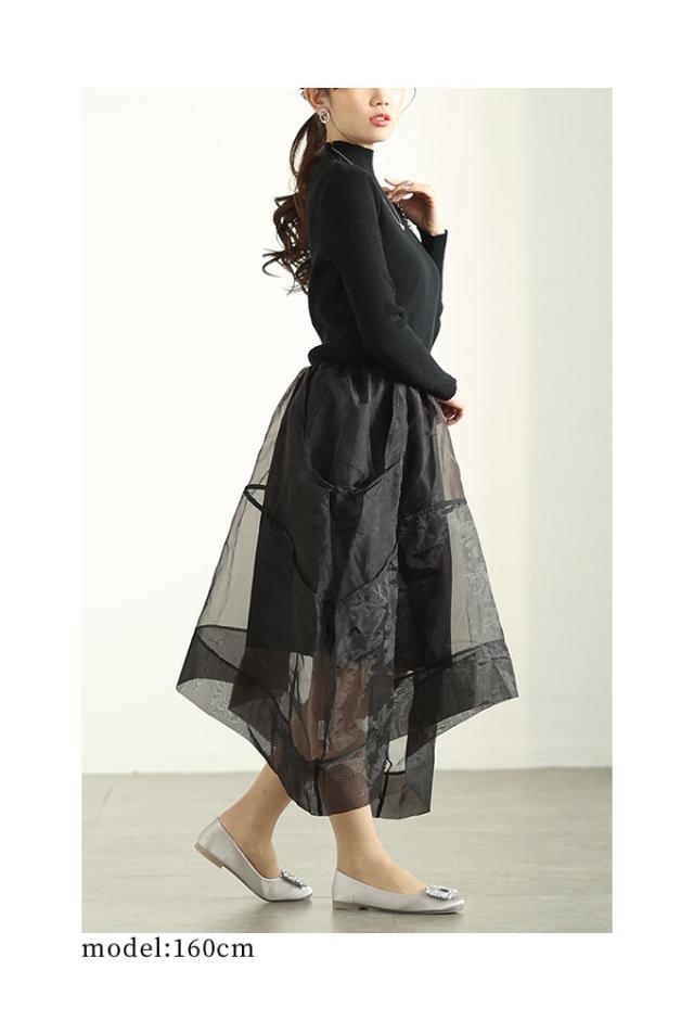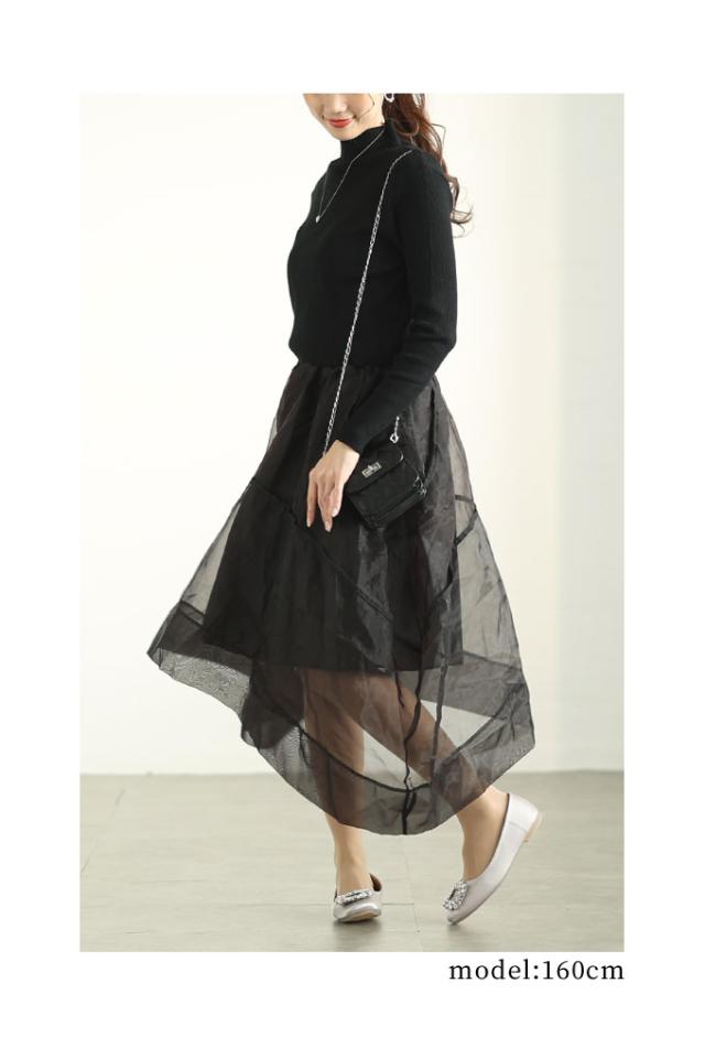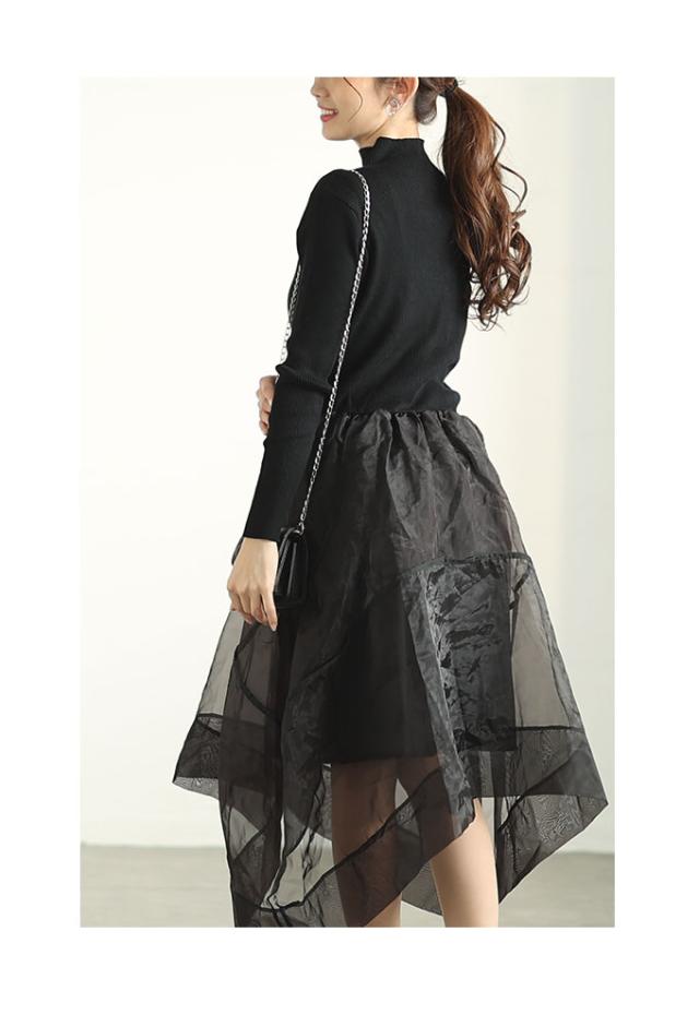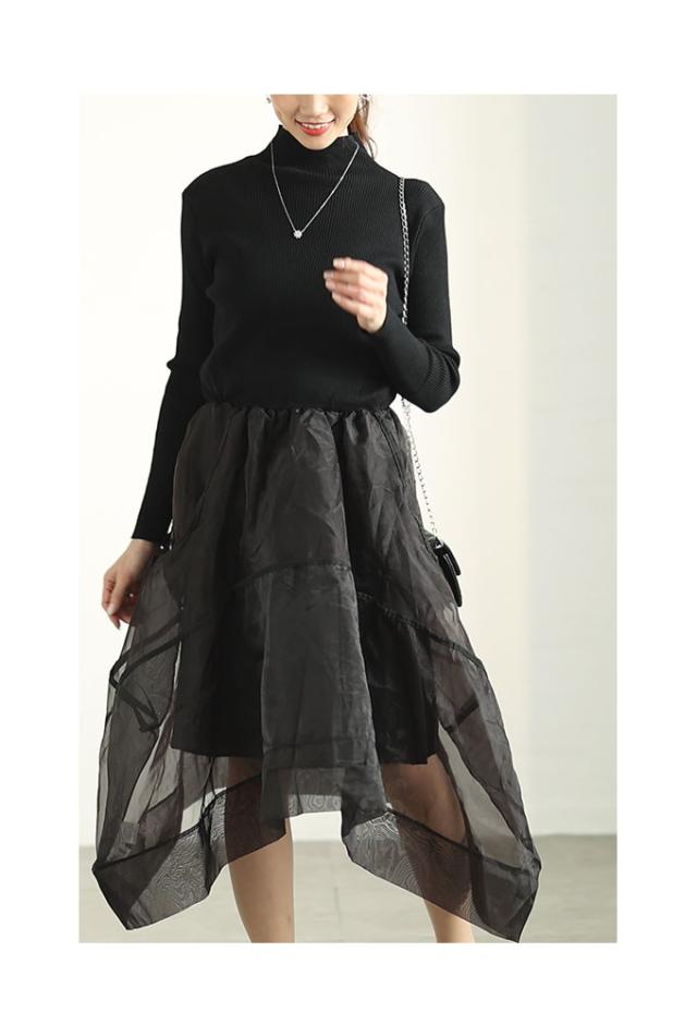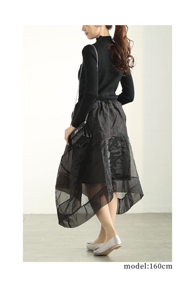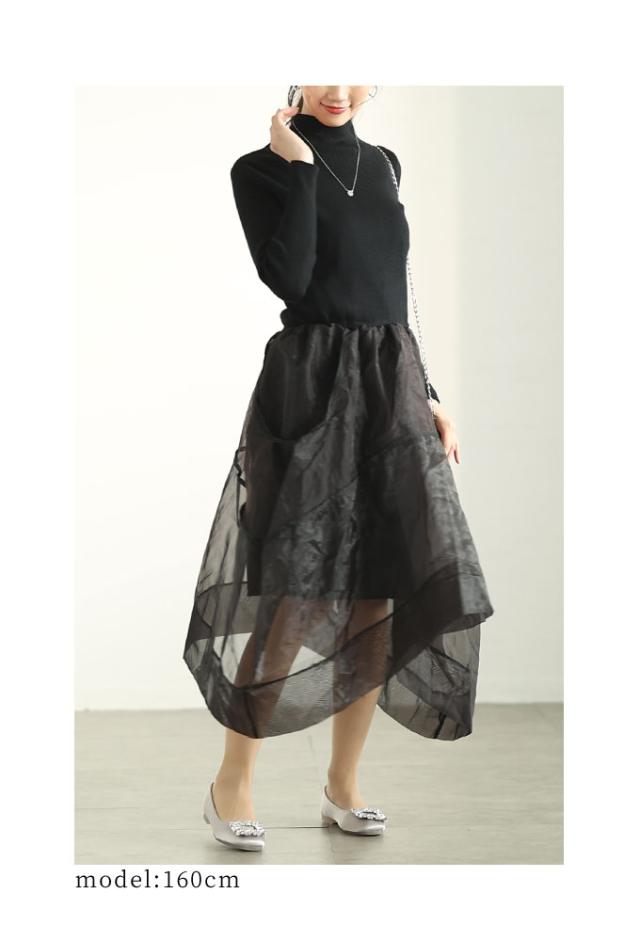 特徴: ニット アシンメトリー オーガンジー フレア ハイネック