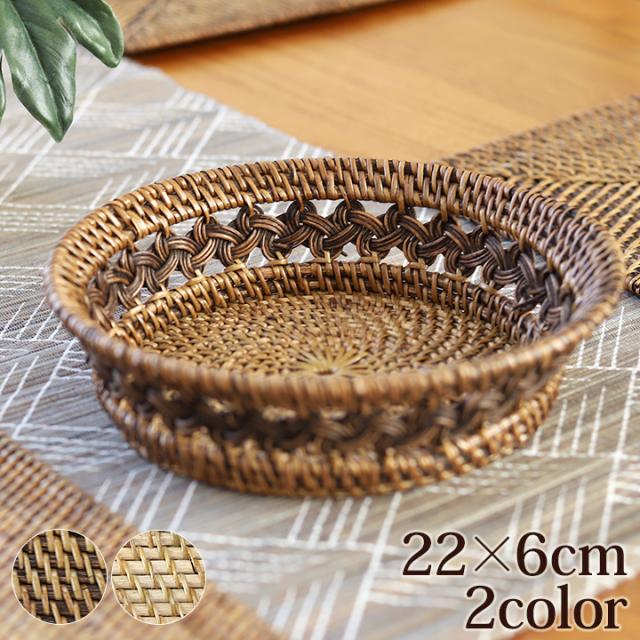 ラタン 模様編みバスケット(M)(約22×6cm) アジアン バリ リゾート ラタン 籐 南国リゾート ナチュラル テーブルウェア 自然素材