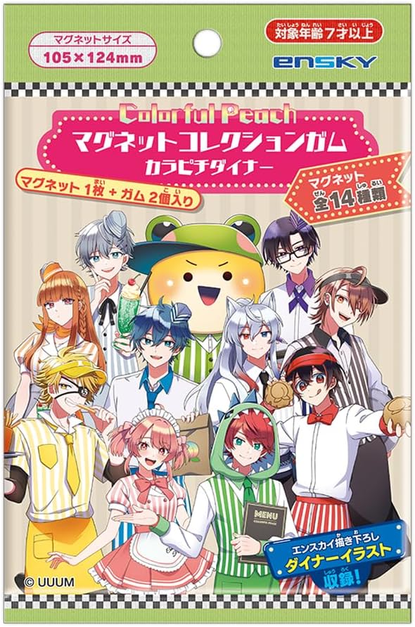 1BOX14パック入り。全14種(1BOXで全種揃わない場合がございます)。「カラフルピーチ」のキャラクターがダイカットにくり抜けるマグネットです。マグネットサイズは124×105mmです。