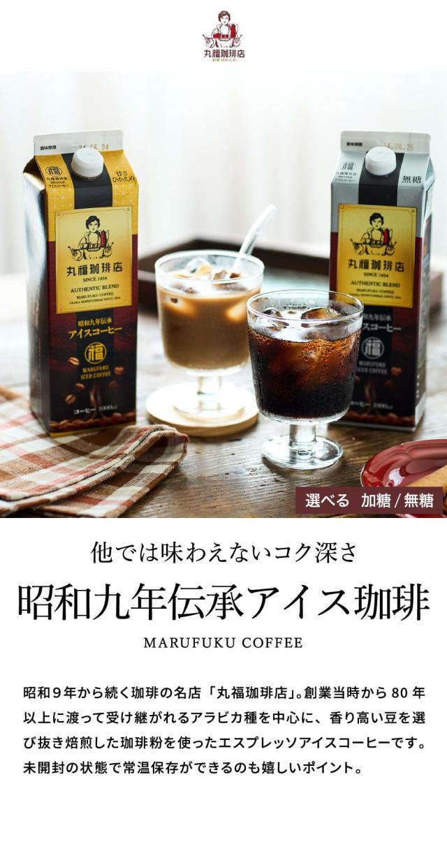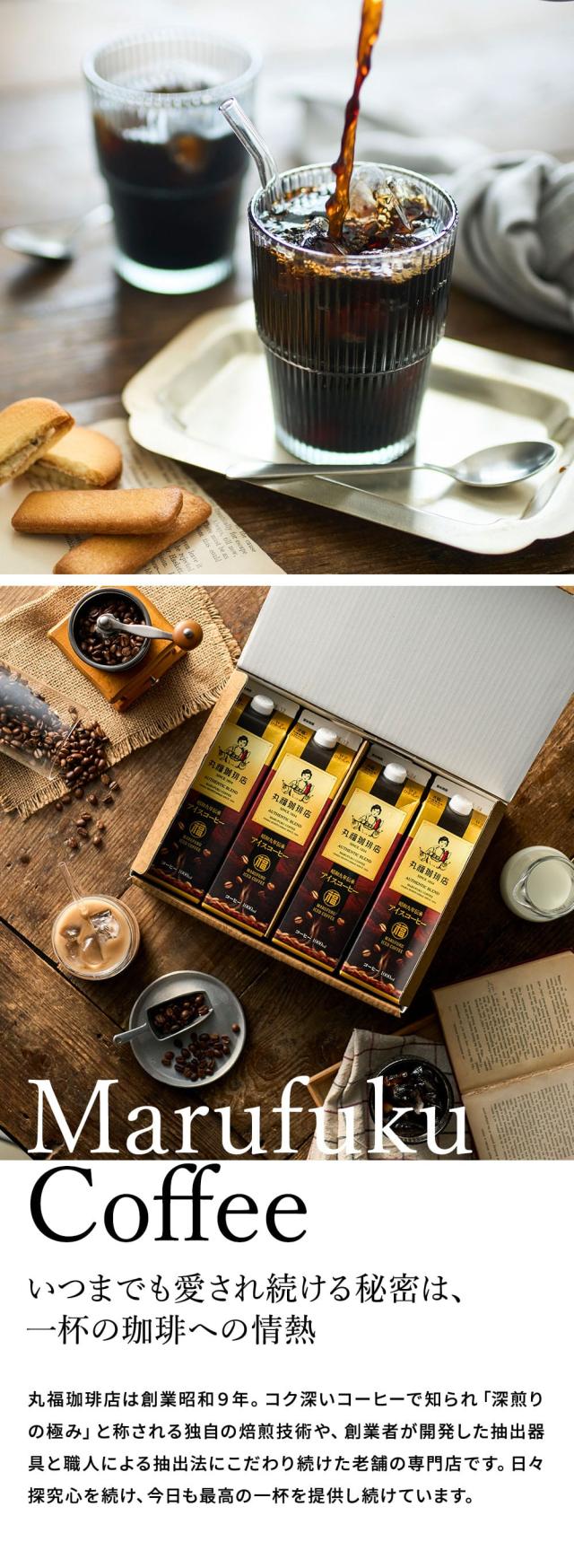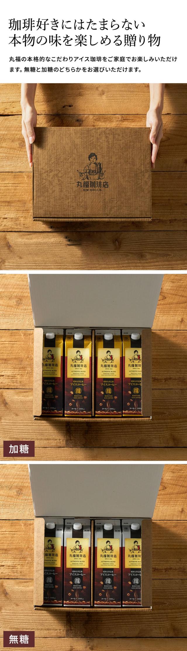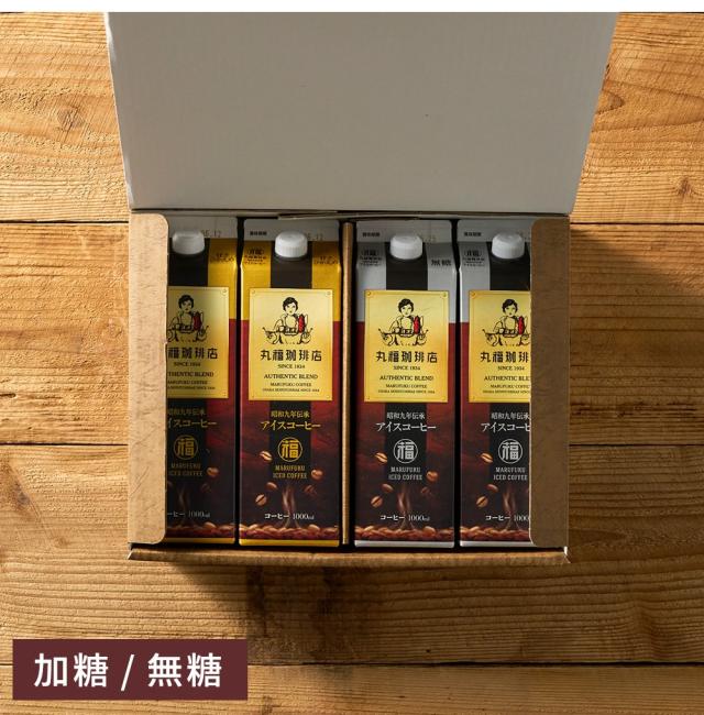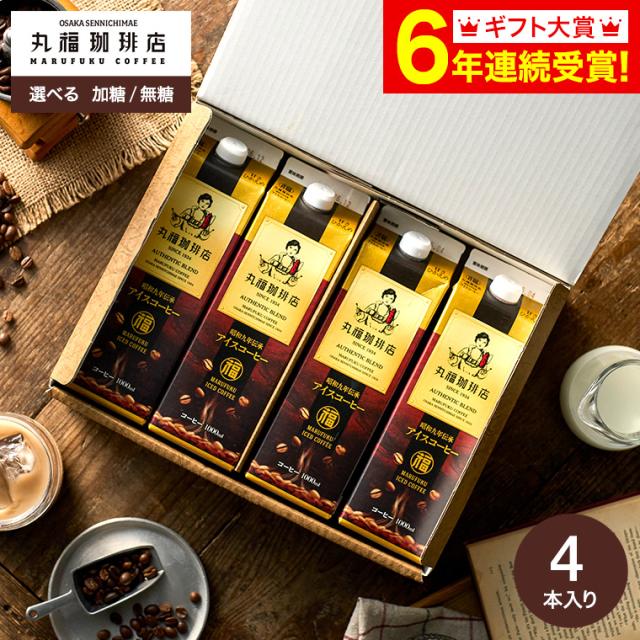 お歳暮 ギフト 送料無料 コーヒー 丸福珈琲店 昭和九年伝承アイスコーヒー 紙パック 1L×4本セット 無糖 甘さひかえめ / コーヒーギフト
