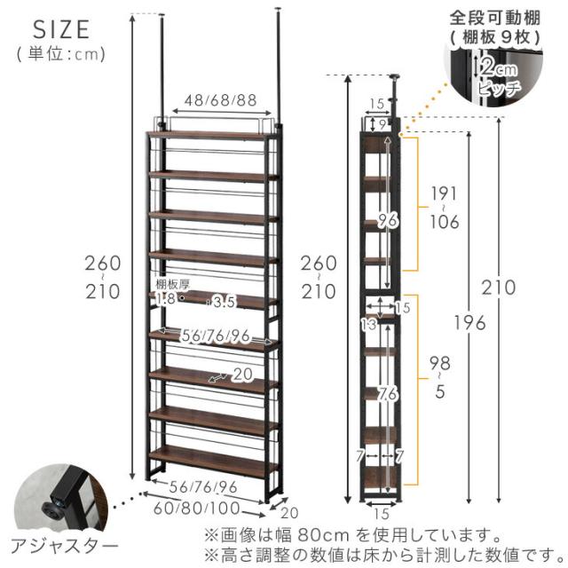 幅80×奥行20×高さ210-260cm