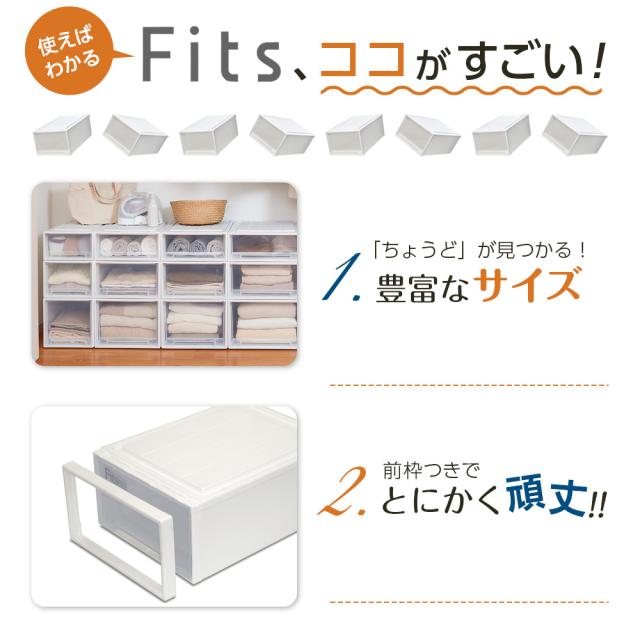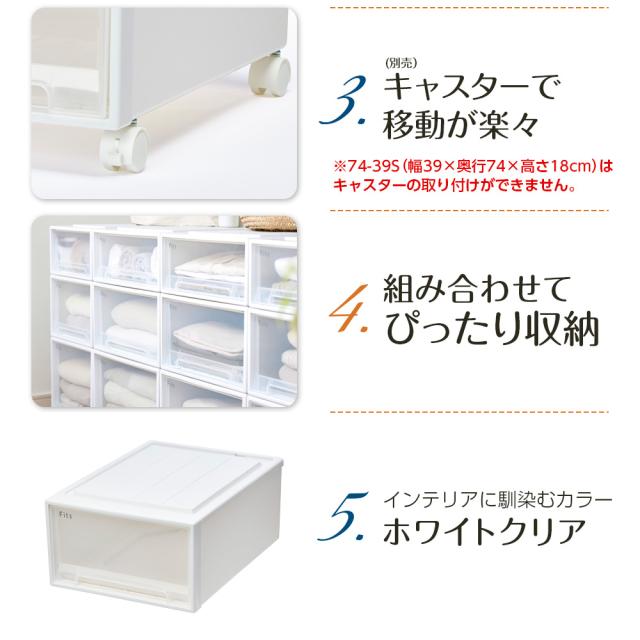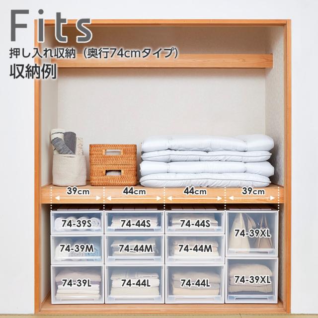 収納ケース Fits フィッツケース 74-39S 幅39×奥行74×高さ18cm ホワイトクリア 単品 | プラスチック スリム 幅39cm 奥行74cm 高さ18cm 引き出し 収納ボックス 衣装ケース 押入れ収納 押し入れ 積み重ね